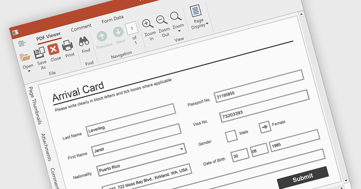 Form filling in a PDF Viewer enables users to interact with editable fields such as text boxes, checkmarks, radio buttons, and selection lists - right inside the document. This functionality is ideal for scenarios like contracts, surveys, and registration forms, where structured input is essential. By integrating these capabilities, developers can improve user interactions and allow form submission without leaving the application, enhancing data capture and eliminating the need for external tools.
