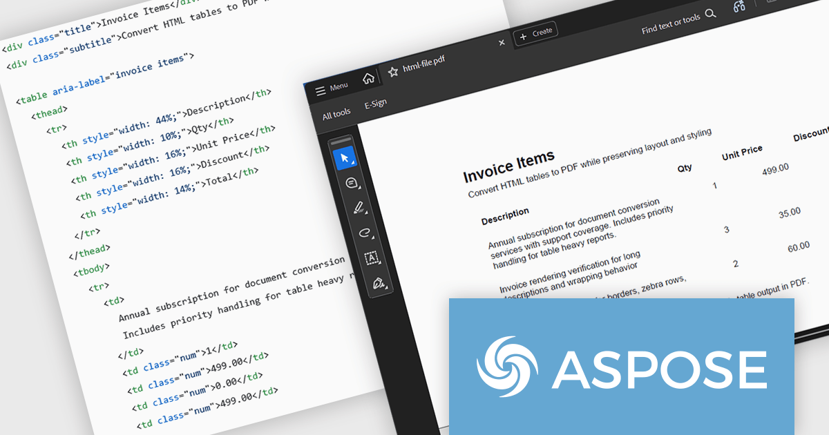 In this blog post, Aspose provides a step-by-step guide to convert HTML tables to PDF with Aspose.HTML in Python via .NET while preserving table layout and styling. You will start with a clean table template, then add custom CSS, custom page size, footer text, and page numbers for report grade PDFs. Steps include: