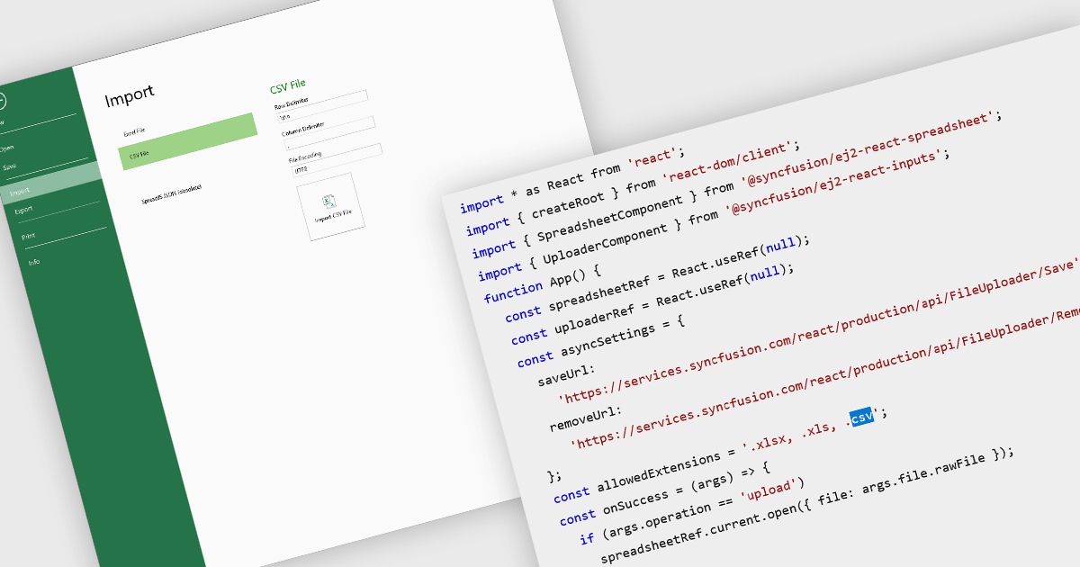 Several React spreadsheet controls offer the ability to import CSV files including: