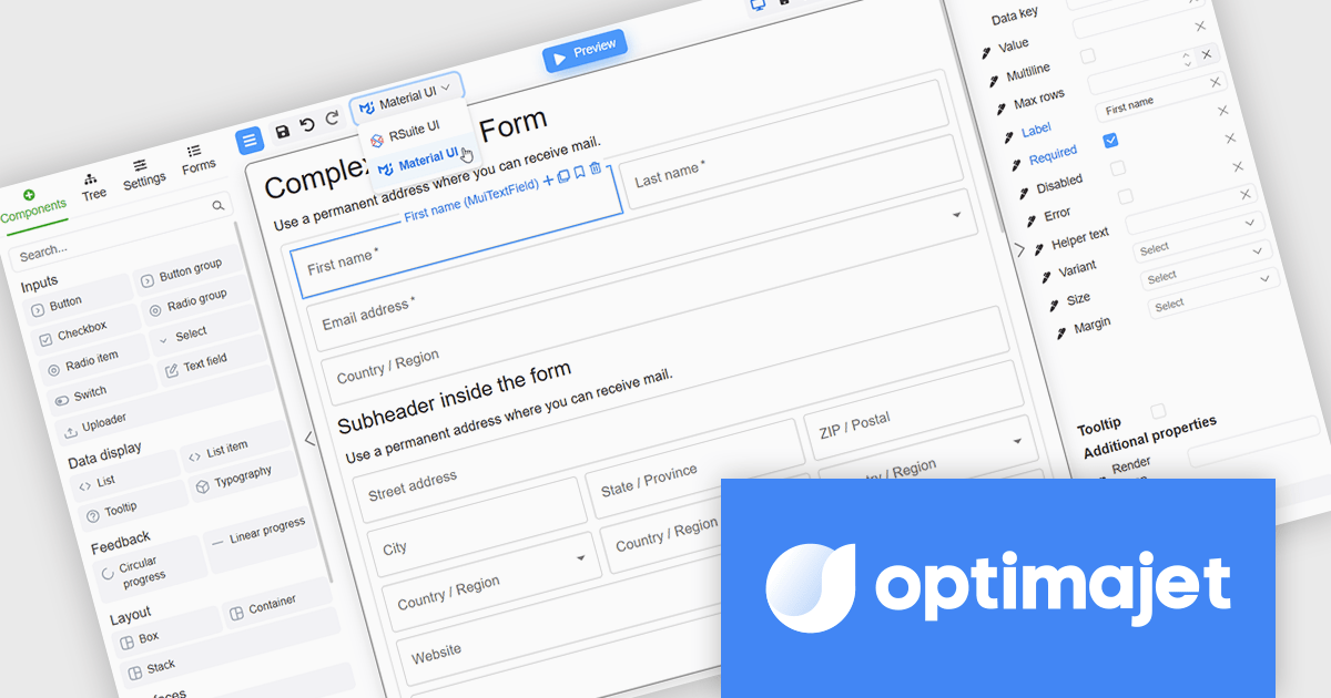 The Optimajet FormEngine v7.10.0 update introduces integration with the Material UI components library, allowing developers to build and render React forms using a widely adopted and actively maintained UI framework. This integration improves form development by reducing reliance on custom components and manual styling, while promoting consistent layout, behavior, and accessibility across applications. By aligning FormEngine with Material UI design patterns, development teams can more easily integrate forms into existing React projects, improve maintainability, and deliver modern user experiences with less effort.