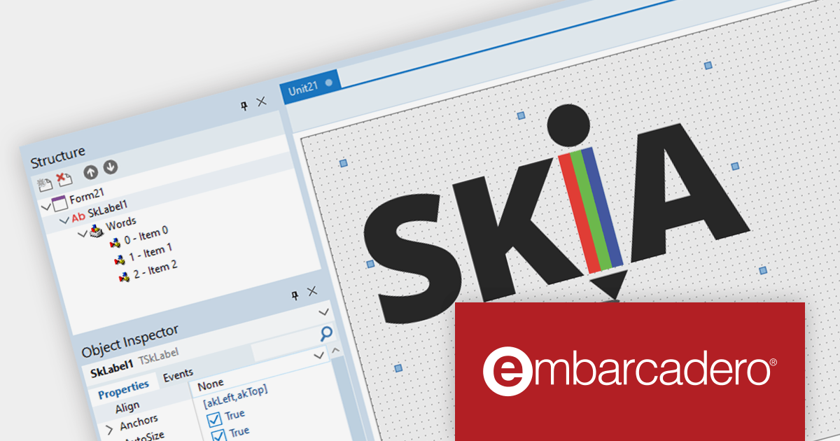 The Delphi 12 Athens release adds integration with Skia - a popular 2D graphics library that provides a common set of APIs which work across a variety of hardware and software platforms. Skia is used as the graphics engine for many popular products including Google Chrome, ChromeOS, Android, Flutter, and Mozilla Firefox. Delphi developers now can leverage this functionality to improve the graphics quality and performance within their own apps.