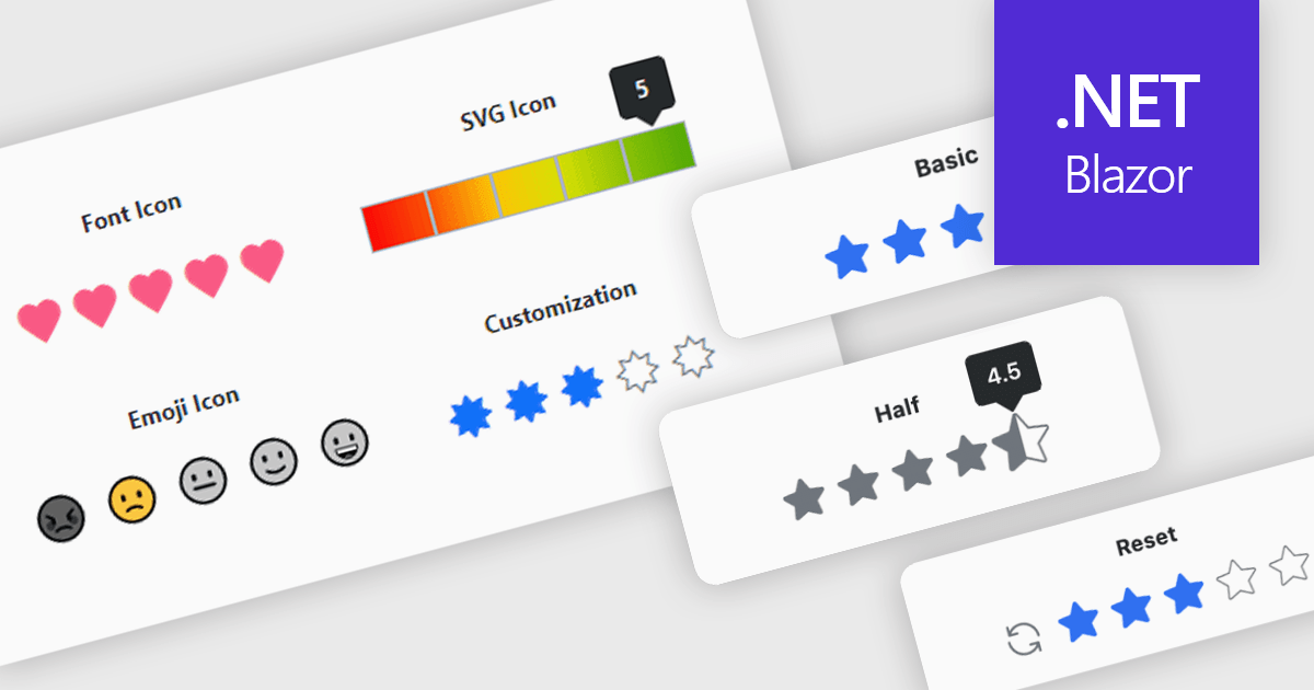 Several Blazor data editor collections provide rating controls including:
