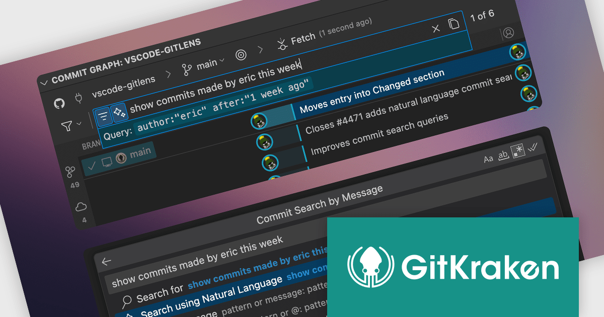 The GitLens for VS Code V17.3 release (included in GitKraken) introduces natural language search for the Commit Graph and command palette, significantly improving how developers interact with their repository's history. Rather than relying on specific syntax or exact commit messages, users can now describe what they’re looking for in plain English and receive relevant results instantly. This change reduces friction in uncovering specific commits or actions, making version history more accessible and actionable. It's particularly valuable in large codebases where precise recall of commit details may be impractical, offering a faster, more intuitive path to insight.