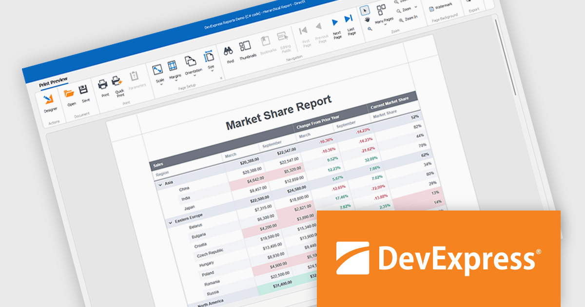 DevExpress WinForms provides advanced analytics in reporting to help developers build data-driven applications that deliver deeper insights. It enables dynamic data shaping, interactive exploration, and precise calculations within reports, allowing developers to incorporate conditional formatting, interactive sorting, filtering, grouping, drill-down navigation, calculated fields, parameters, and real-time summaries to create reports that adapt to user input, highlight key metrics, and support informed decision-making.