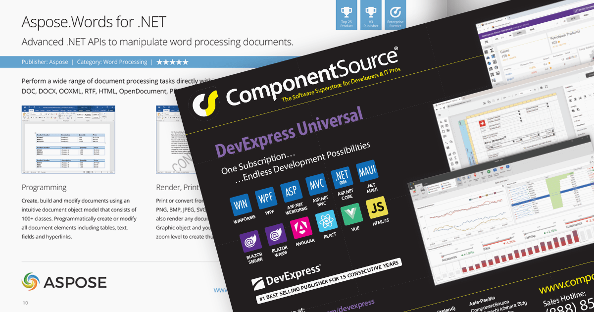 Over the last 29 years, ComponentSource has built a comprehensive marketplace to help its users discover, compare and buy Enterprise-grade software components and tools. The ComponentSource Catalog showcases a range of products in an easy-to-digest print publication.