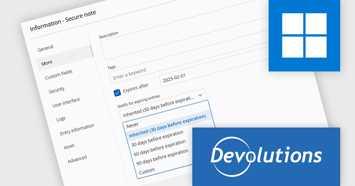 Devolutions Server now includes configurable alerts for expiring entries, allowing software developers and IT teams to proactively manage time-sensitive credentials, secrets, and other vault content. This feature enhances operational awareness by enabling notifications at the system, vault, and user levels, with support for inherited properties to streamline configuration. Developers can now rely on timely alerts to avoid service disruptions or security risks caused by overlooked expiration, while also customizing notification preferences to suit individual workflows or team responsibilities.