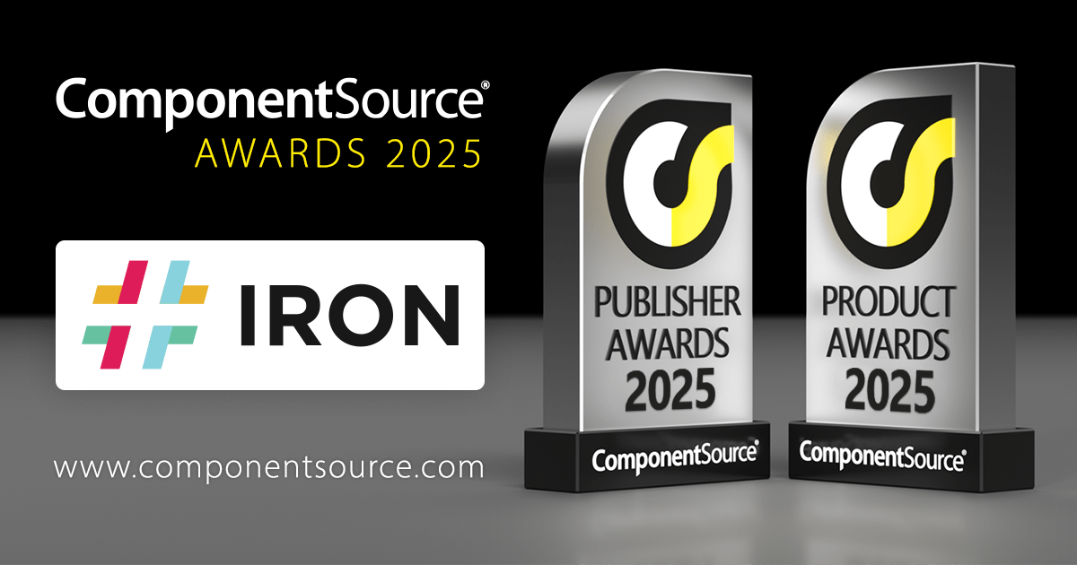 Congratulations to Iron Software on winning a Top 50 Publisher Award and a Top 100 Product Award for IronPDF for .NET in the annual ComponentSource Awards for 2025. We're pleased to once again recognize Iron Software's ongoing excellence in developing document solutions.