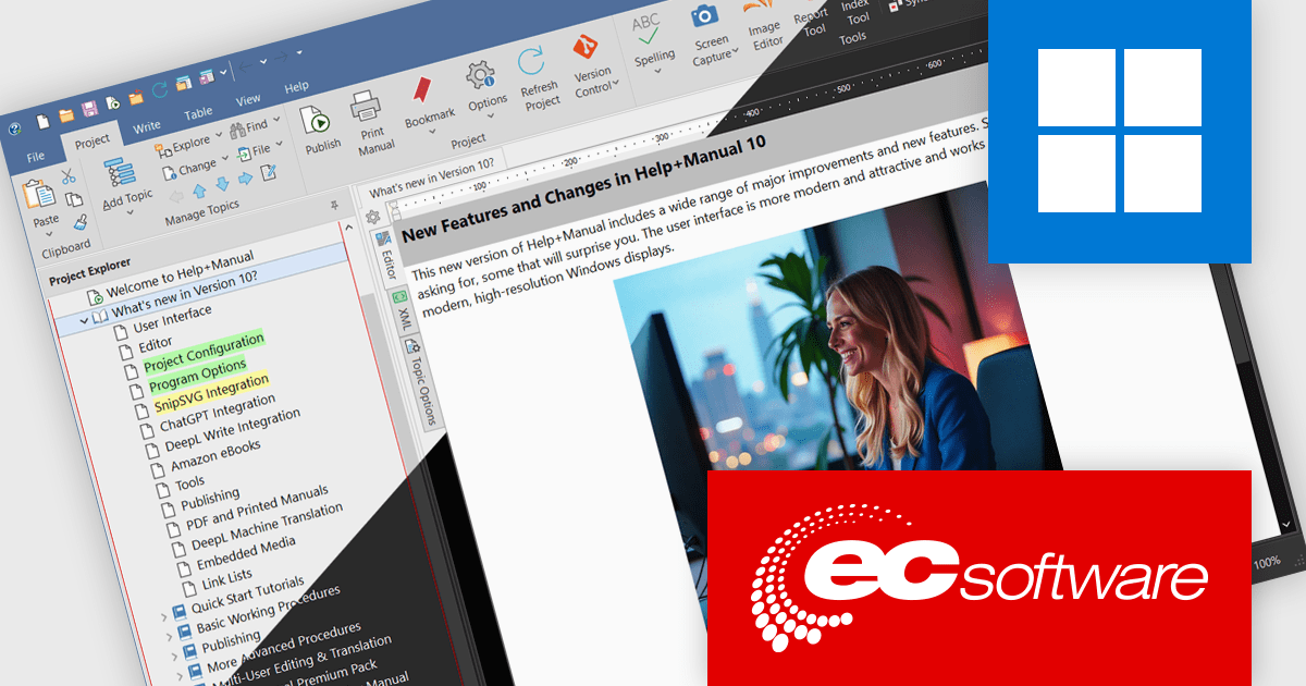 The Help & Manual 10 update introduces an updated High-DPI user interface that delivers a sharper, more consistent visual experience across all display settings. All interface and table of contents icons are now vector-based SVGs, ensuring they scale cleanly without pixelation on high-resolution monitors. The interface also includes full support for Windows dark mode, with the option to automatically follow the system theme, allowing developers to work comfortably in varied lighting environments. These enhancements provide a modern, visually optimized workspace that improves readability and reduces visual strain during extended development and documentation sessions.