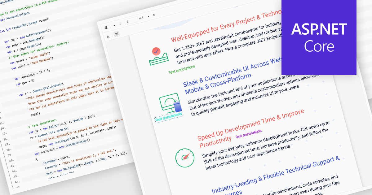 Several ASP.NET Core PDF controls offer support for free text annotations including: