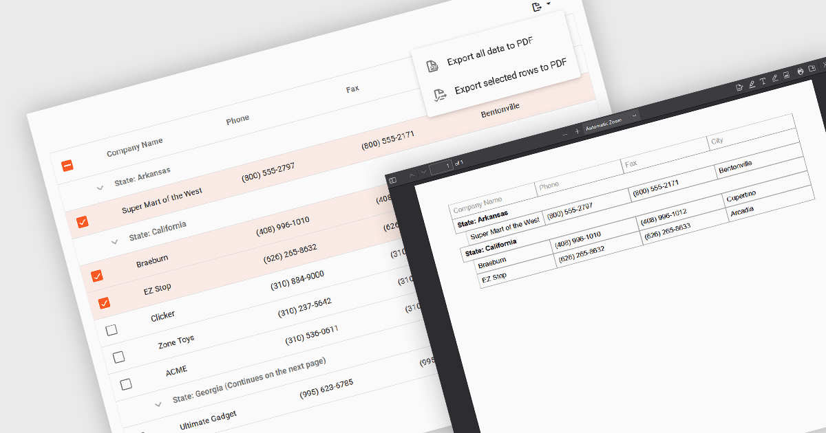 Export selection in a data grid is the ability to export only a defined range, the specific rows, columns or cells that a user has actively selected, rather than the entire dataset. This selective approach is particularly valuable when working with large data sets, as it allows users to extract and share only the most relevant subset of information without additional filtering or manual deletion after export. By reducing the volume of unnecessary data in exported files, it improves efficiency, helps maintain focus on the intended content, and can enhance security by avoiding the inclusion of sensitive or unrelated information. This targeted export capability is commonly used to output data in formats such as CSV, Excel, or PDF, supporting the integration of grid data into reporting and analysis processes.