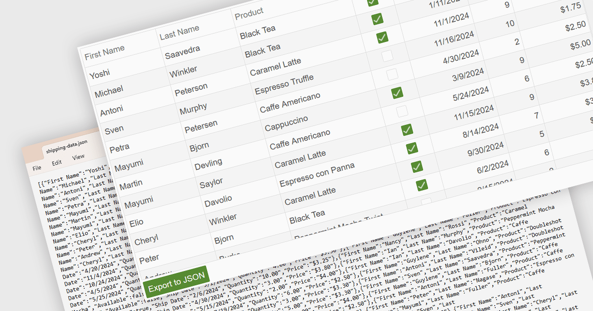 Exporting a data grid to JSON format is a common feature in modern web-based data tools that involves converting the structured data displayed in a grid, such as rows and columns representing records and fields, into JavaScript Object Notation (JSON), a lightweight, text-based format commonly used for data interchange. This process enables the grid's contents to be saved in a machine-readable structure that preserves the hierarchy and attributes of the data, making it easily consumable by web services, APIs, or other applications. The benefits of exporting to JSON include its compatibility with a wide range of programming environments, ease of integration with frontend and backend systems, and suitability for transmitting data across networked systems or persisting it for later use in client-side operations or remote storage.
