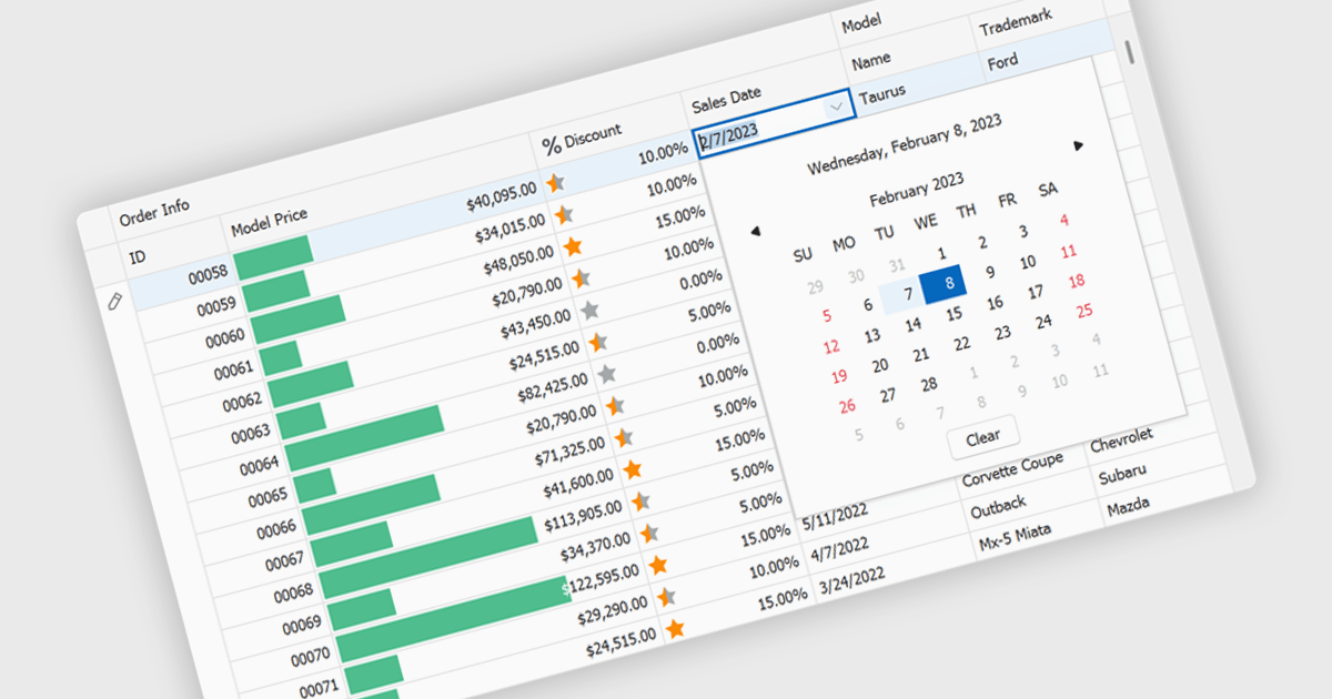 A date editor enables users to easily input, modify, and validate date values through an intuitive interface such as a calendar picker or spinner. This feature ensures consistent date formats across datasets, reduces manual entry errors, and improves overall data integrity. By enforcing validation rules and supporting localization, date editors accommodate a wide range of user needs and regional formats. Common use cases include managing records in applications such as employee databases, scheduling systems, financial reporting tools, and project management dashboards where accurate and consistent date information is essential for reliable data analysis and decision-making.